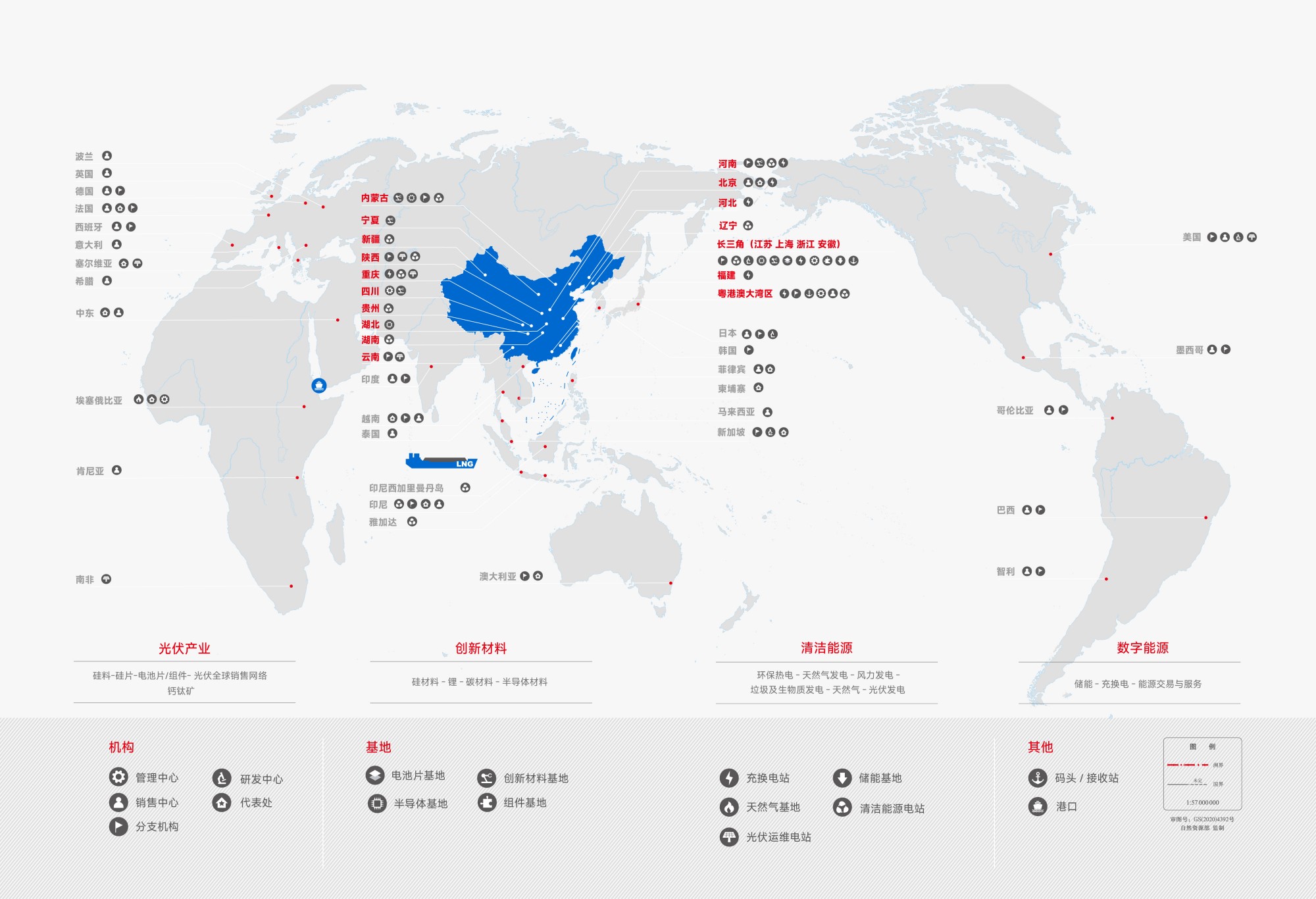 協鑫積極實施“綠色能源出海”計劃,研發中心、生產基地和分支機構遍布美國、日本、新加坡、印尼、埃塞、泰國、印度、澳大利亞、德國、韓國等二十多個重點國別市場以及北美、南美、中東、歐洲、中亞多國,產品及解決方案覆蓋全球70多個國家和地區,在全球多地晉升為產品全生命周期碳足跡領先的主力供應商。積極參與“一帶一路”能源合作,打造氣貿站一體化產業鏈,助力國家及區域能源安全。