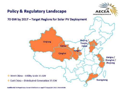 China is attempting to move its PV market from primarily utility-scale PV in Northwestern China to primarily distributed PV in densely populated areas in the East, North and South.