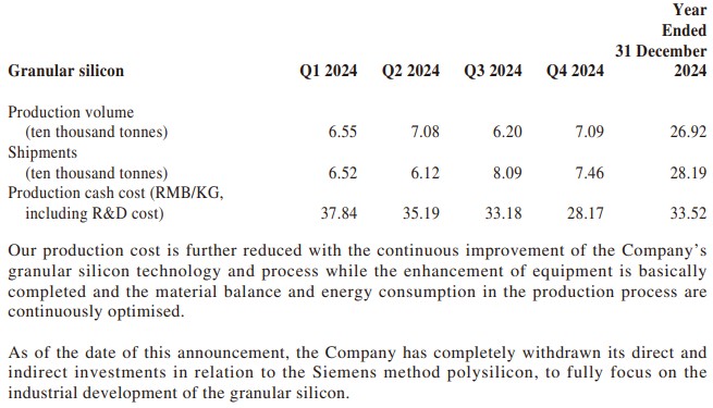 At the same time, GCL Technology also stated in the announcement that the company has completely withdrawn from its direct and indirect investments related to Siemens process polysilicon production and is to fully focus on the development of FBR granular silicon.