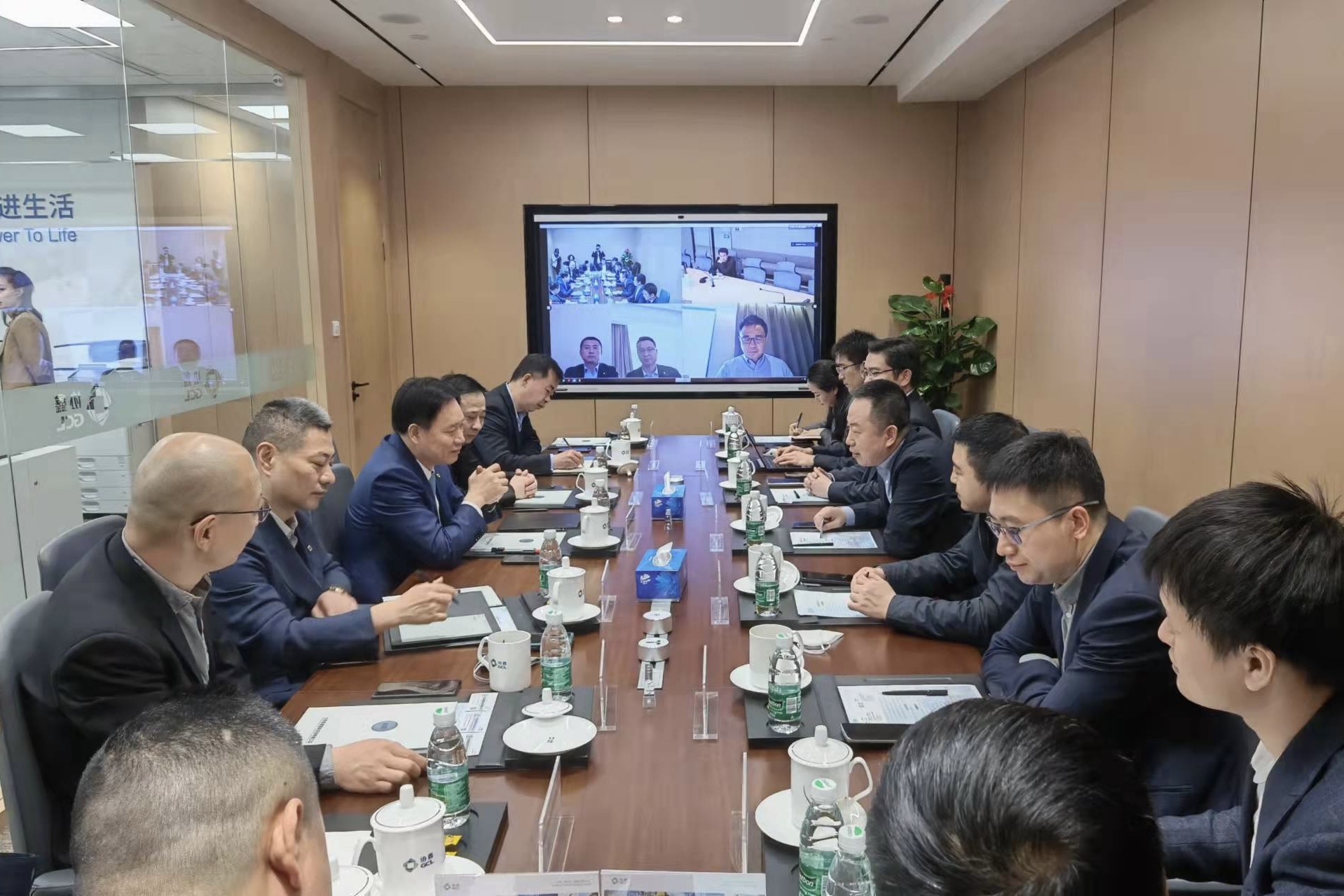 On the morning of April 1st, Zhang Ping, Chairman of the board of directors of Beijing Energy International Holdings Co., Ltd., and his delegation went to Chengdu, Sichuan to meet with Zhu Gongshan, Chairman of GCL Group, in seek of a comprehensive partnership in the new energy field.