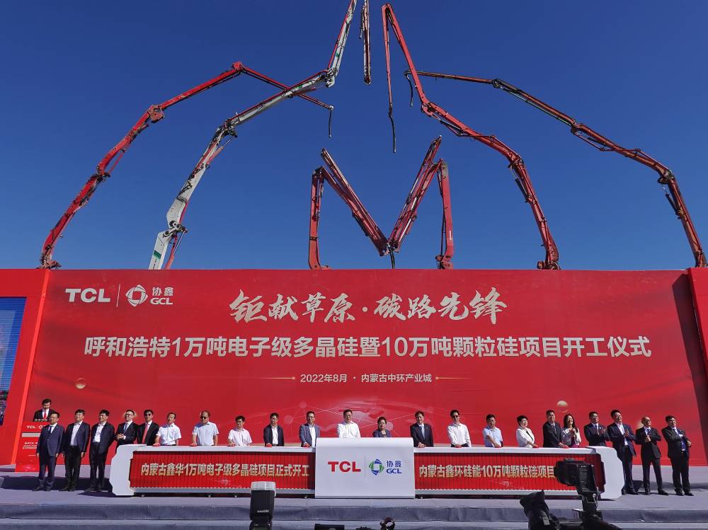 The commencement ceremony of TCL&GCL Hohhot 10,000-ton electronic grade polysilicon project and 100,000-ton granular silicon project was held in Hohhot, Inner Mongolia, attended and witnessed by Bao Gang (Member of the Standing Committee of the Inner Mongolia Autonomous Region Party Committee and Secretary of the Hohhot Municipal Party Committee),