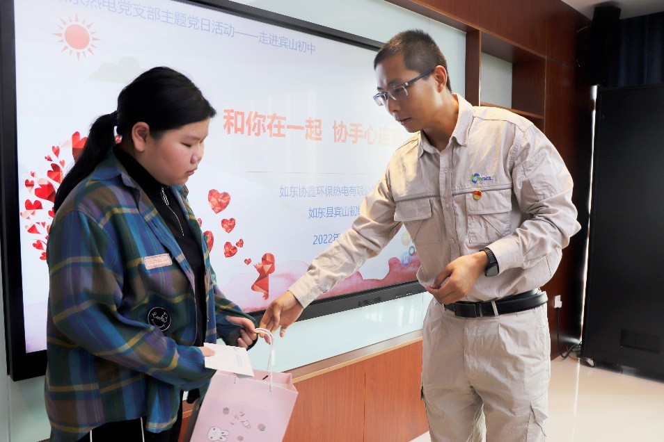 2022年8月15日,如東熱電首次走進(jìn)賓山初中,開展“和你在一起·協(xié)手心連鑫”愛心助學(xué)活動(dòng)。如東熱電與周邊賓山初級(jí)中學(xué)結(jié)隊(duì),精準(zhǔn)識(shí)別李顧彤、蔡欣彤兩名貧困學(xué)生,公司黨支部書記、工會(huì)主席馬敬波向兩名資助對(duì)象捐贈(zèng)了助學(xué)金和學(xué)習(xí)用品,電力技術(shù)人員還義務(wù)為學(xué)校排查配電安全隱患。志愿者們持續(xù)關(guān)注資助對(duì)象,當(dāng)?shù)弥铑櫷矣秒姰惓#坝晟祥T檢修線路、宣傳安全用電知識(shí),用專業(yè)守護(hù)溫暖。