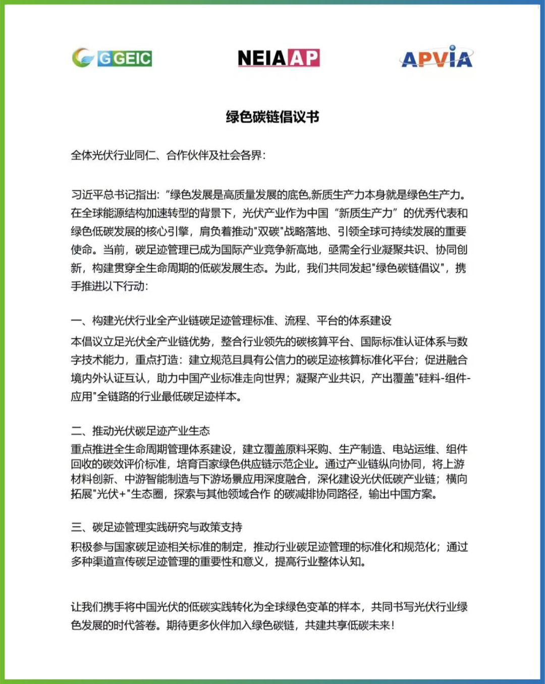 圍繞倡議的三大行動綱領,協鑫以全產業鏈協同創新為核心,多點發力開展示范性實踐:在構建全產業鏈碳足跡管理體系上,依托顆粒硅產品的低碳優勢與碳鏈管理平臺的技術賦能,實現以顆粒硅為原料的組件產品低碳足跡可視化追蹤、可量化核算與可信化驗證,提供可復制的數字化碳管理方案;在培育光伏碳足跡產業生態層面,縱向協同產業鏈上下游,打通材料創新、智能制造與場景應用全鏈條以推動低碳產業集群建設,同時拓展“光伏+”生態圈,探索與儲能、智慧能源等領域的碳減排協同路徑;在強化碳足跡管理實踐與政策支撐方面,主動參與國家碳足跡標準制定以推動行業標準化,精準匹配國際標準對數據可靠性的要求,為中國光伏企業接軌全球碳管理體系搭建可信橋梁。