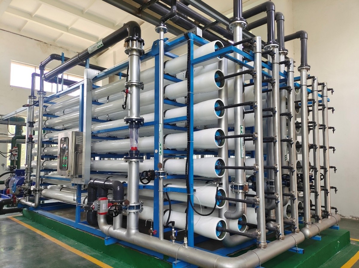 蘇州藍天對60噸/小時純水反滲透系統進行創新升級,新增智能化控制系統。該系統搭載抗污染膜元件與DCS智能控制模塊,可根據水質動態調節壓力流量,實現高鹽高硬度濃水的高效分離轉化,產水回注中間水箱,無縫銜接下一級除鹽工序,形成水資源的梯級利用。經測算,該系統每年可回收高品質再生水達32.5萬噸,既降低企業對外水資源依賴,又大幅削減濃水排放,為區域水生態保護作出重要貢獻。