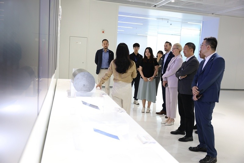 會談前,BSI代表團參觀協鑫未來能源館,深入了解協鑫在顆粒硅、鈣鈦礦+疊層技術、虛擬電廠系統等新能源領域的前沿技術應用與產業布局規劃,對協鑫集團在技術研發創新和產業戰略布局方面取得的領先成果給予高度肯定。