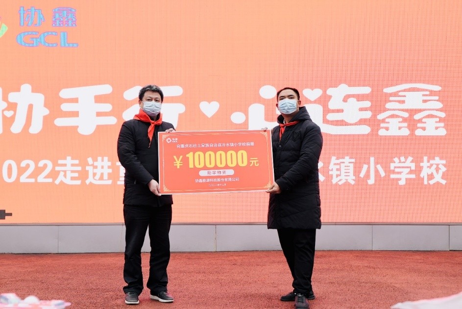 圖2 2022年協鑫能科向重慶石柱土家族自治縣冷水鎮小學校捐贈了價值10萬元的興教助學物資