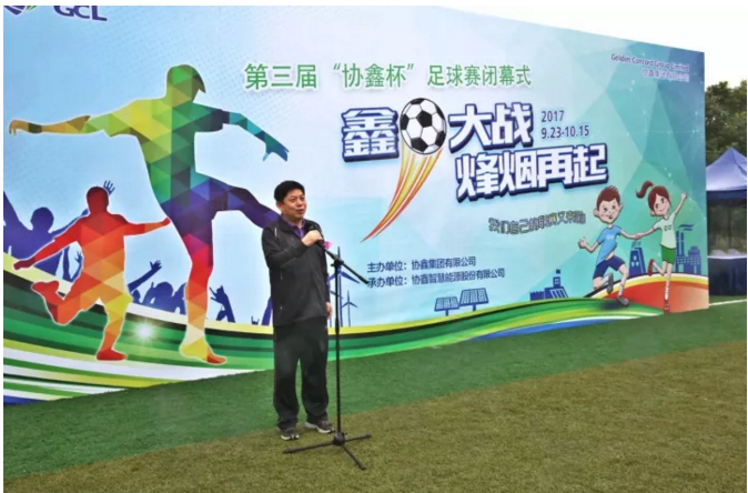 10月15日,在綿密的秋雨中,協鑫集團第三屆"協鑫杯"足球賽圓滿落下帷幕。協鑫集團副總裁顧強參加閉幕式并致辭。