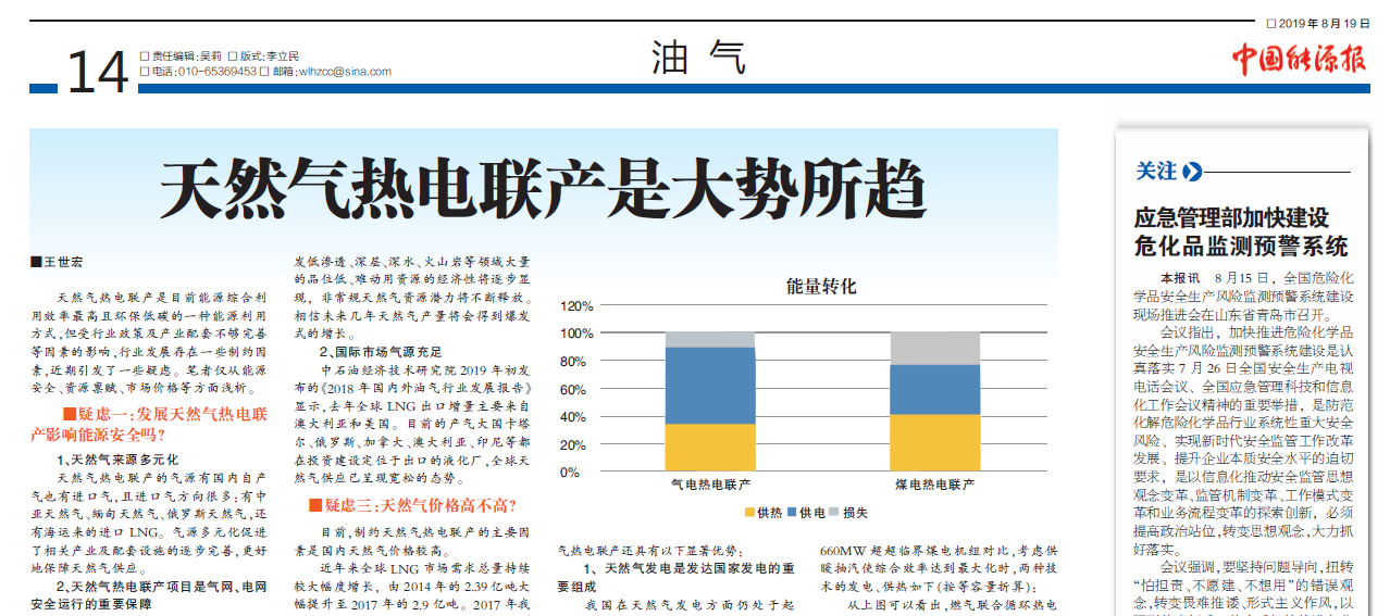 目前,制約天然氣熱電聯(lián)產(chǎn)的主要因素是國內(nèi)天然氣價格較高。