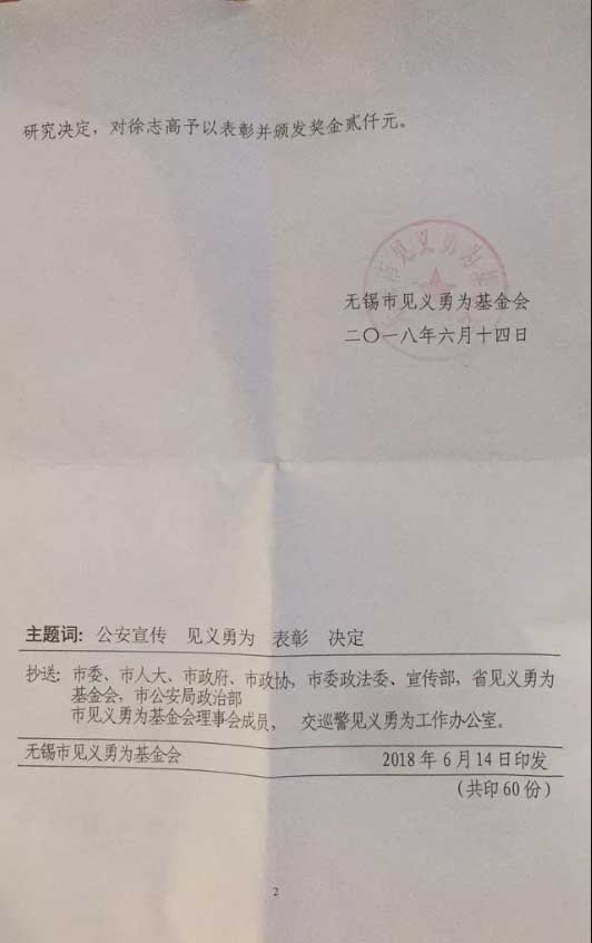 連日來,一個叫徐志高的協鑫人不知不覺間成了網紅。原來,7月5日下午,無錫市公安局交警支隊見義勇為工作辦公室對他在高速路上伸出援手、救助受傷人員的義行進行表彰,并向其頒發了證書和獎金。值得稱贊的是,徐志高當場毫不猶豫地將所獲獎金委托交警部門捐贈給獲救的受傷人員。