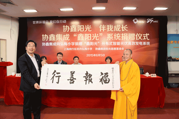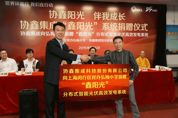 6月5日下午,作為“世界環境日”的一項主題活動,協鑫集成科技股份有限公司向上海市弘梅小學捐贈了一套5千瓦的“鑫陽光”智能光伏發電系統。由此,弘梅小學也將成為上海市首個安裝光伏發電系統的中小學。