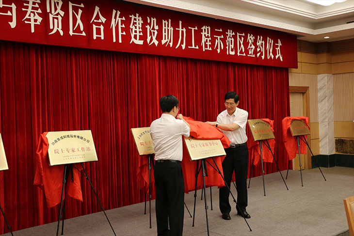 中共上海市奉賢區(qū)委副書記袁曉琳主持儀式。儀式上,楊建榮書記與中共上海市奉賢區(qū)委常委、副區(qū)長(zhǎng)陳文華簽署《助力工程示范區(qū)建設(shè)合作框架協(xié)議》,根據(jù)協(xié)議要求,雙方將充分利用院士專家工作站這一平臺(tái),對(duì)接項(xiàng)目,深化合作,為推動(dòng)奉賢區(qū)地方經(jīng)濟(jì)發(fā)展作出貢獻(xiàn)。