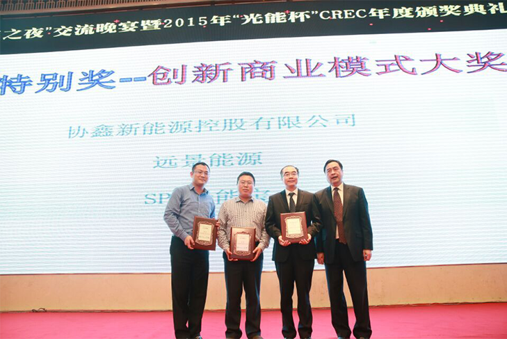 11月5日晚,在“十一科技之夜”交流晚宴暨2015年“光能杯”CREC年度頒獎典禮上,協鑫新能源控股有限公司分別榮膺 “優秀電站開發投資商大獎”、“優秀EPC企業大獎”、“創新商業模式大獎” 三大獎項,公司副總裁徐陽代表公司領取了獎牌代表公司并發表獲獎感言。