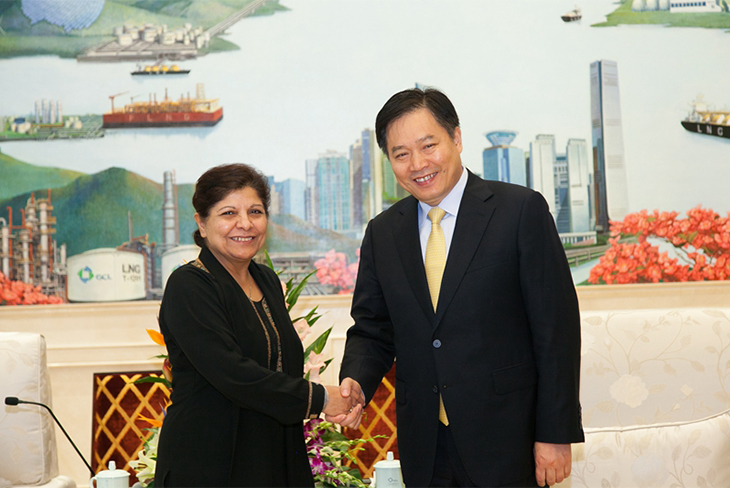 研討會正式開始前,協(xié)鑫集團董事長朱共山在協(xié)鑫能源中心接待了沙姆沙德•阿赫塔爾一行。在向阿赫塔爾博士介紹協(xié)鑫從傳統(tǒng)能源向清潔能源和新能源轉型的業(yè)務發(fā)展過程中,朱共山提到公司新推出的電動e交通業(yè)務,以智能多功能充電樁+新能源汽車一體化發(fā)展的新模式,為交通擁堵、霧霾嚴重的大城市提供電動汽車分時租賃服務。朱共山表示,未來的城市家庭不需要自己購買電動車,使用手機終端從就近的充電樁掃碼后就可以把車開走,到目的地附近的充電樁充電、歸還即可。