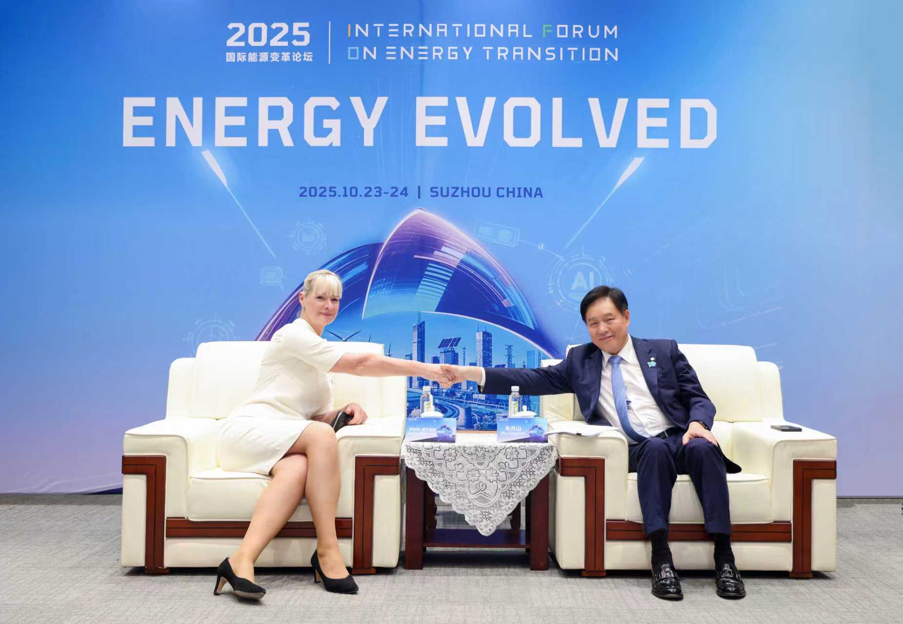 10月24日,2025國際能源變革論壇在江蘇蘇州舉辦期間,全球綠色能源理事會主席、亞洲光伏產業協會主席、協鑫集團董事長朱共山,與世界能源理事會總干事安吉拉?威爾金森博士舉行會晤。雙方立足全球能源治理與可持續發展大局,圍繞能源組織合作、國